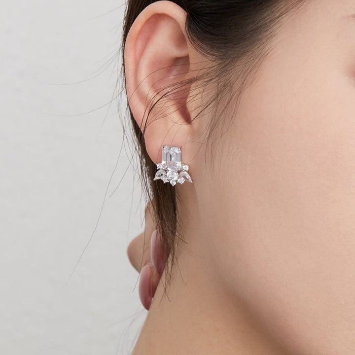 Pendientes Baguette Blanca y Gotas en Argento 925 Rodinado.